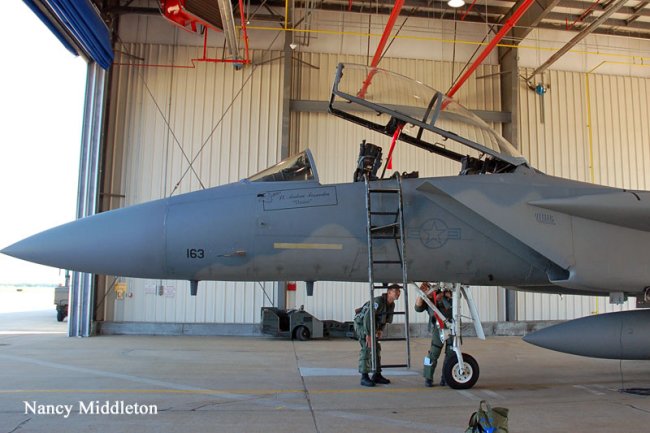 While KIMO and I walked, my family and dear friend that accompanied us, Lorraine, were ushered into an Air Force truck and driven out the hangar where F-15B 77-163 was waiting for us.