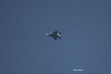 He gives it full afterburner, and I get the sensation of a rug being yanked out from under me while being kicked in the backside! We quickly accelerate and within seconds, are passing by where everyone was watching us – I think we were just over 100 knots. We lift off right in front of them, and hug the runway as the gear’s quickly retracted. This was a very cool feeling going faster and faster just off the runway. At 400 knots, KIMO then asks if I was ready – yep – he then pulls on the stick and we go vertical at 70 degrees. I am almost immediately squished into the seat and the G-suit inflates pressing on my legs and gut. I had forgotten to lower my visor, and was somewhat blinded by the sun on the way up to 10,000 feet. I am squinting to see, and before I know it, we roll inverted and there is Cape Cod – 10,000 feet below. This was probably all in less than 20 seconds. KIMO then flips us over, and we had done 3 Gs. I thought – what a rush that was! In the photo below that shows us inverted, we were at 10,000 feet. Thanks Matt for having the big zoom on your camera!